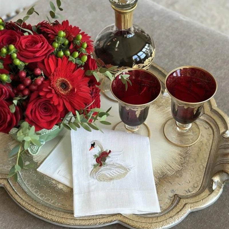 Arte Italica's Towels are beautiful. Welcome the holidays with the Christmas Swan Towel, made from luxurious 100% linen. Its charming swan motif brings a fun and festive vibe to your kitchen. Perfect for both practical use and enhancing your seasonal decor with subtle sophistication. Made of high-quality linen, embrace the beauty of nature this holiday season. Machine wash and iron flat for a crisp look. Tab on back for hanging. 100% linen. Made in Ukraine.