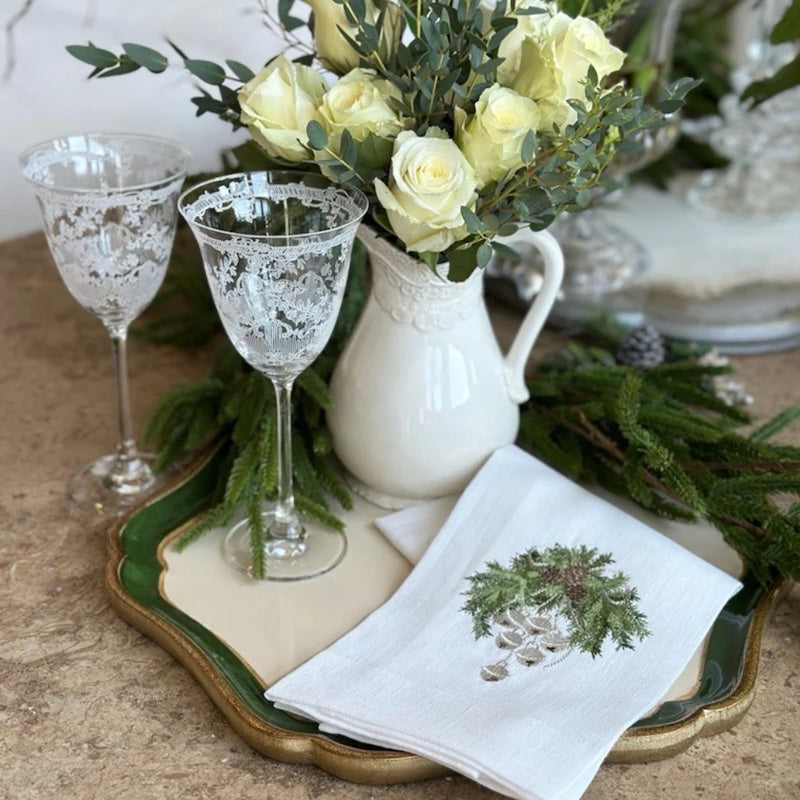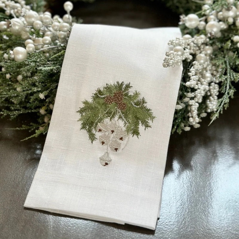 Arte Italica's Towels are beautiful. Spruce up your kitchen for the holidays with the Jingle Bell Swag Towel. Crafted from 100% linen, it showcases a delightful pine swag accented with shimmering silver jingle bells, adding a joyful sparkle to your festive decor. Ideal for holiday decorating or as a cheerful gift! Machine wash and iron flat for a crisp look. Tab on back for hanging. 100% linen. Made in Ukraine.