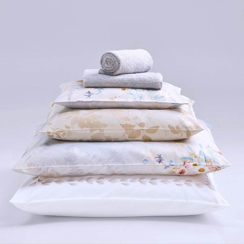 Christian Fischbacher's Eternity takes the fern motif as a symbol of eternity and durability. Flower bouquets of hydrangeas, poppies and African lilies form a harmonious composite on the finely drawn fern leaves. The elegant bed linen in elegant silver, beige and gold tones fits effortlessly into a wide range of interiors and gives your bedroom a luxurious atmosphere. Zipper Closure. 100% Cotton.