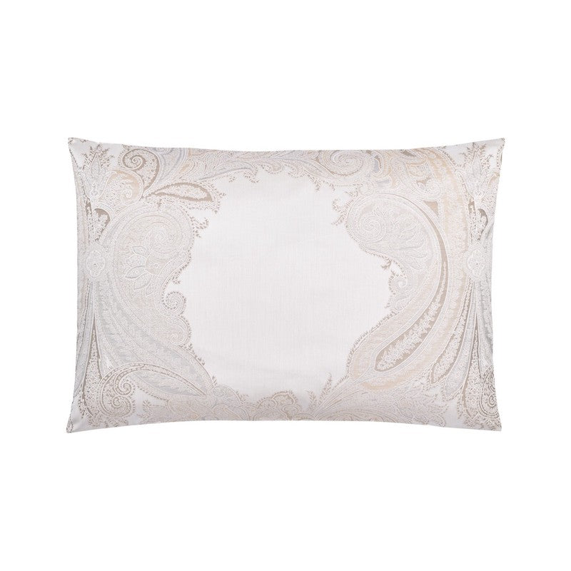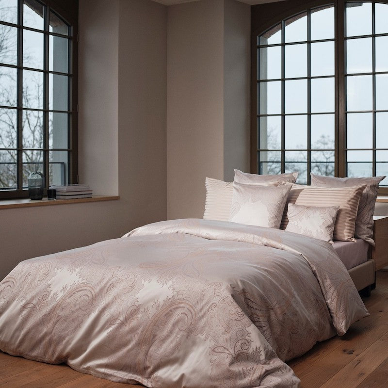 Christian Fischbacher's Grace 305 Light Grey is a masterpiece of jacquard weaving of the highest quality and craftsmanship. The magnificent, beautiful paisley motif is made in Italy by one of the best weavers in shades of gold, silver and rose. Warp and weft colors are cleverly interwoven to create a deep, multicolored effect with the most luxurious effect. 100% Cotton.Â