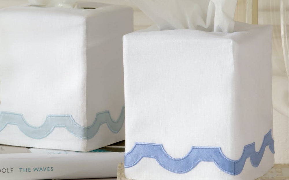 Matouk Schumacher Gabriel Tissue Box Cover Stony Blue