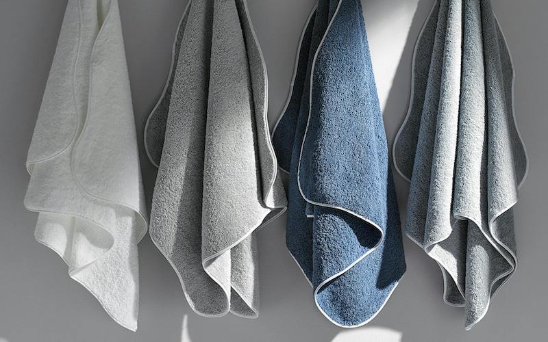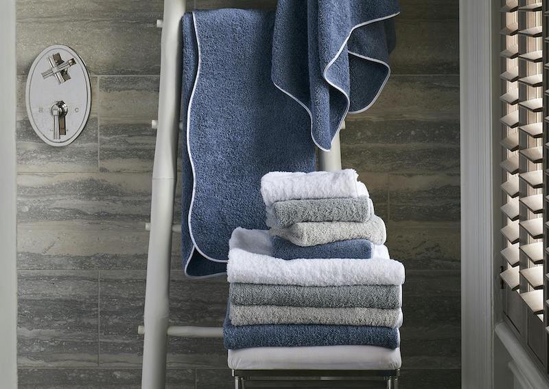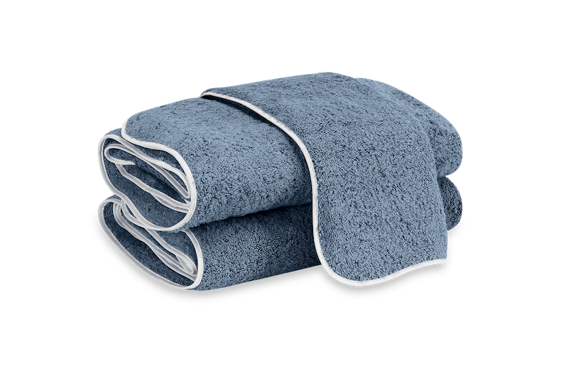 Cairo Wave Bath Towels in Sea and White are made with zero twist yarns that make them so plush, incredibly soft and super absorbent. A subtle wavy edge gives this collection an attractive silhouette. 100% long staple cotton. Made in the USA of fabric from Portugal Portugal.Â