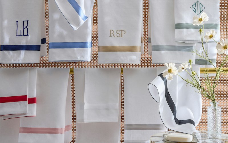 Matouk's Lowell Guest Towels in Scarlet beloved's design is reimagined as a linen guest towel, where white Valentina linen with Nocturne sateen trim offers a tailored, polished touch. Comes with a complimentary Matouk Gift Box. 100% linen. Made in the Philippines of fabric from Portugal.