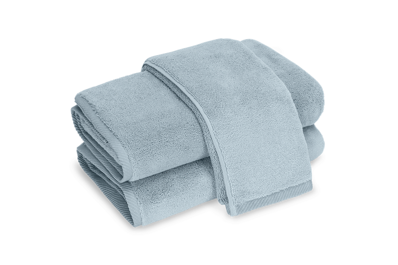 Milagro Hazy Blue, from Matouk, is one of our best selling towels. Made from long staple cotton of zero twisted yarns, these towels are soft, absorbent and light to the touch. 550 gram weight. Available in 22 colors and five sizes plus a bath mat. Made in Portugal.