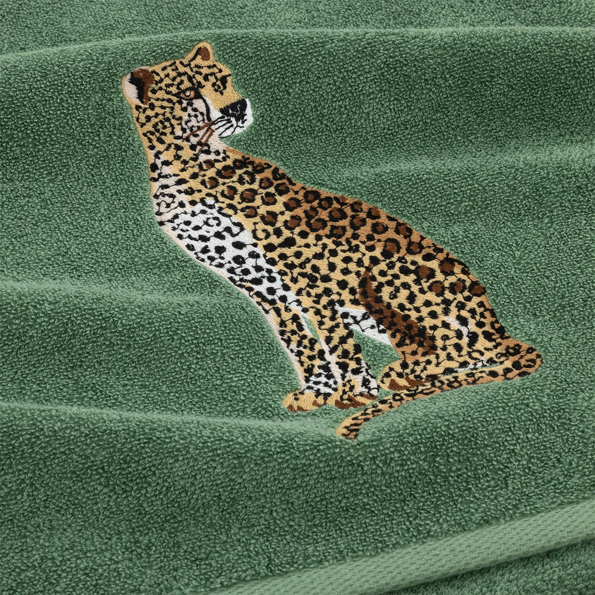 Yves Delorme's Contes Bath Collection Contes bath collection invites you to escape, through the understated elegance of their embroidered animal motifs—like dreamlike silhouettes emerging from an imaginary garden. Solid terry towels with leopard embroidery. Different embroidery on each towel. 83% organic cotton, 17% modal, 450 gsm. Made in Turkey.